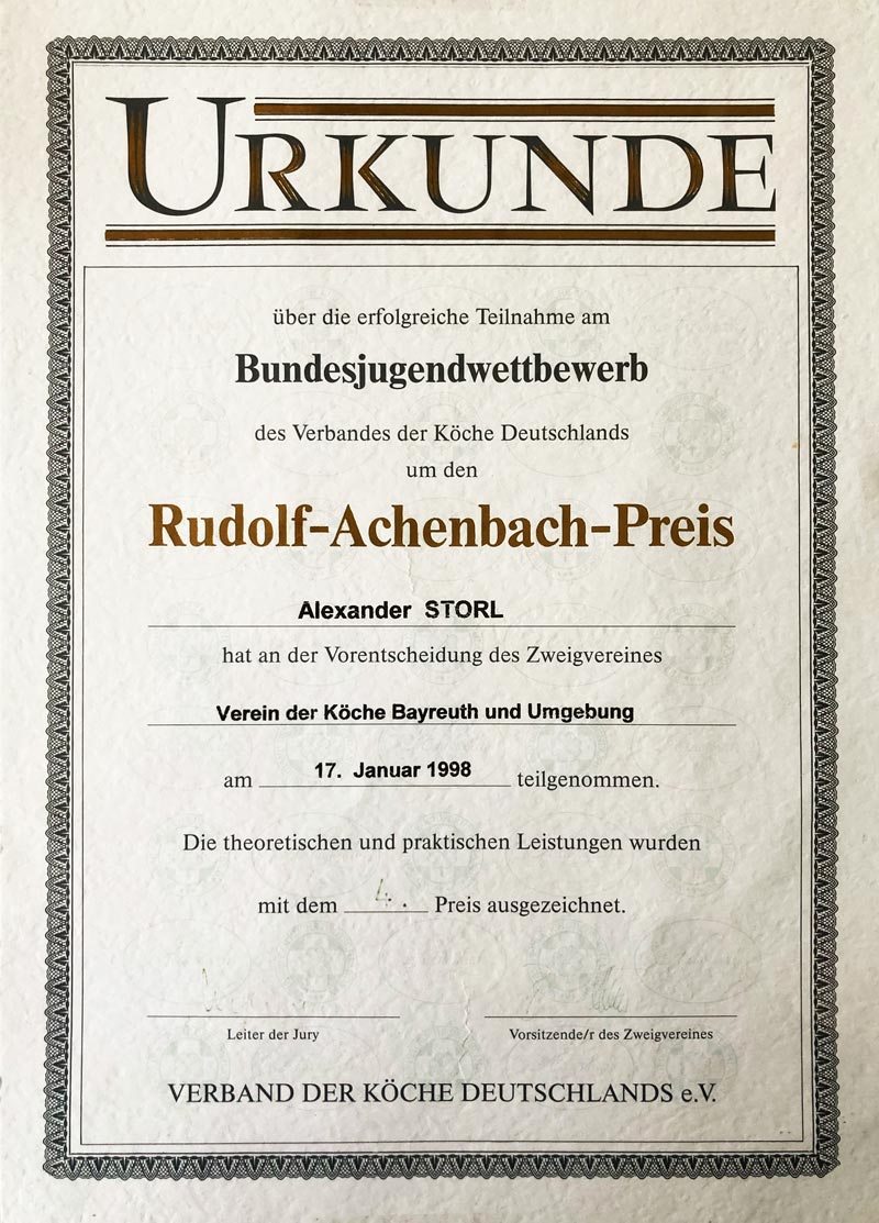2010 verzauberte mich das schöne Städtchen in Mittelfranken. Nach 16 Jahren „Restaurant Waldblick“ erfülle ich mir einen weiteren Lebenstraum einer kleinen, bodenständigen Gastwirtschaft im Herzen von Roth. Auch nach mehr als einem Jahrzehnt verwöhne ich meine Gäste jeden Tag auf’s Neue mit leckeren Speisen aus der Region. Vor der Eröffnung meines ersten Restaurants im Landkreis Roth, konnte ich in Anstellungen als Koch, Chef de Partie, Sous-Chef und Küchenchef viele Eindrücke und Erfahrungen sammeln, welche mich als Freund, Chef und Gastgeber enorm bereichert haben.